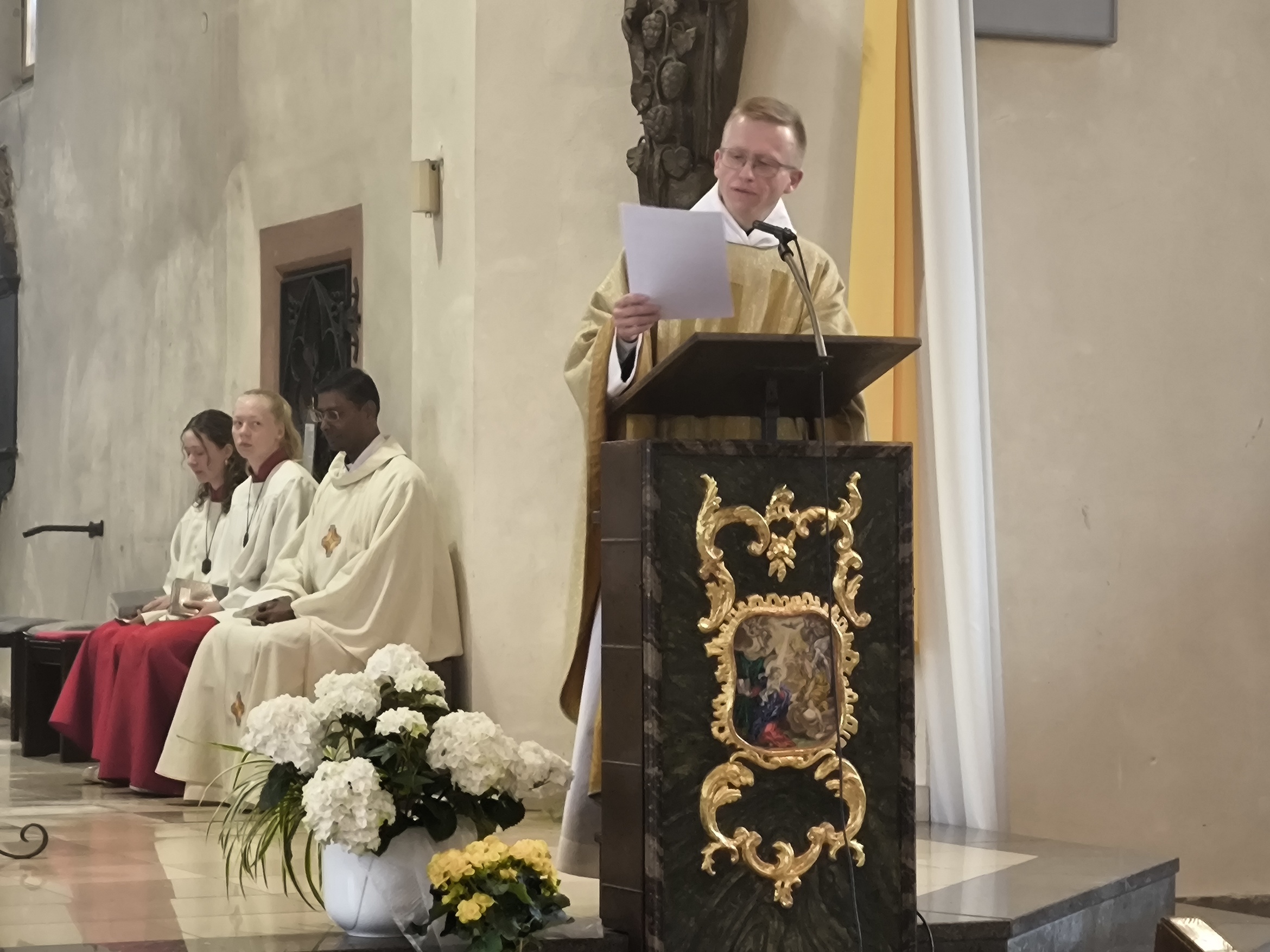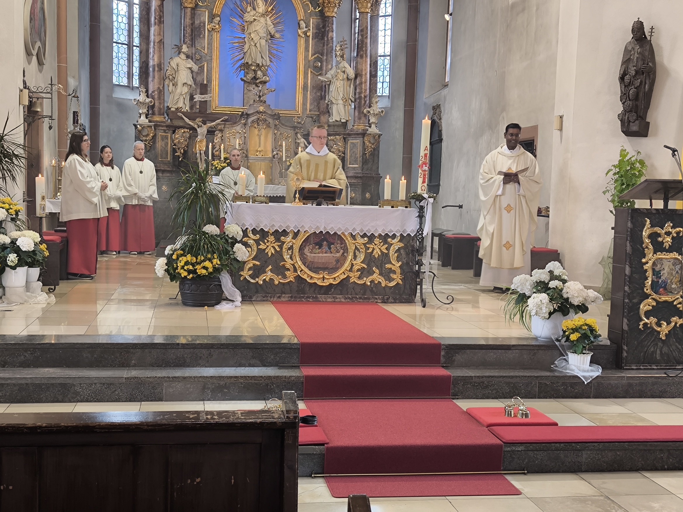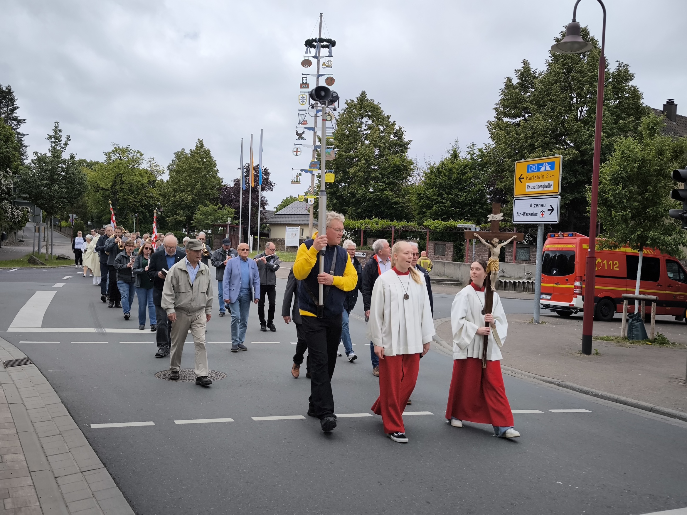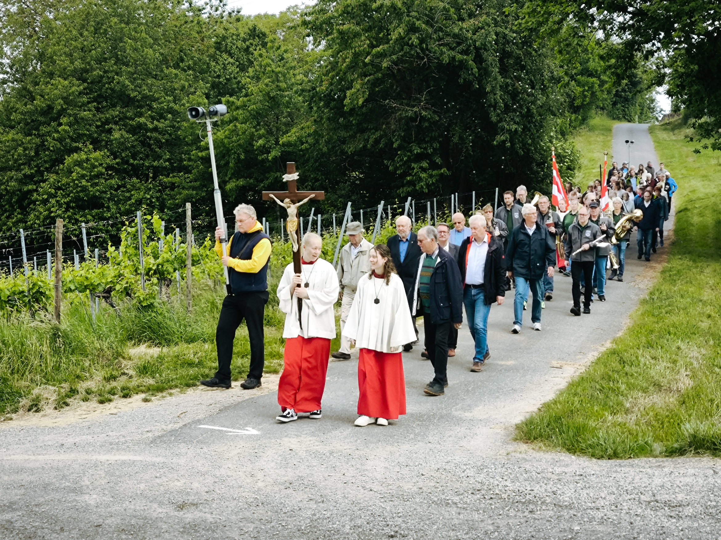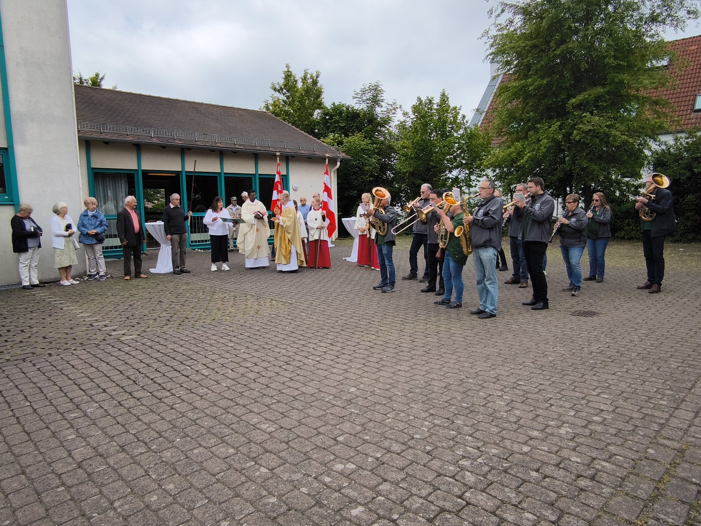 Der begnadete ehemalige Regensburger Domspatz bereicherte den Tag auch mit seinem Gesang. So erklang das Kyrie aus der Missa de Angelis, das "irische" Halleluja und die gesungene Allerheiligenlitanei. Die Prozession wurde durch den Musikverein Hörstein musikalisch begleitet.