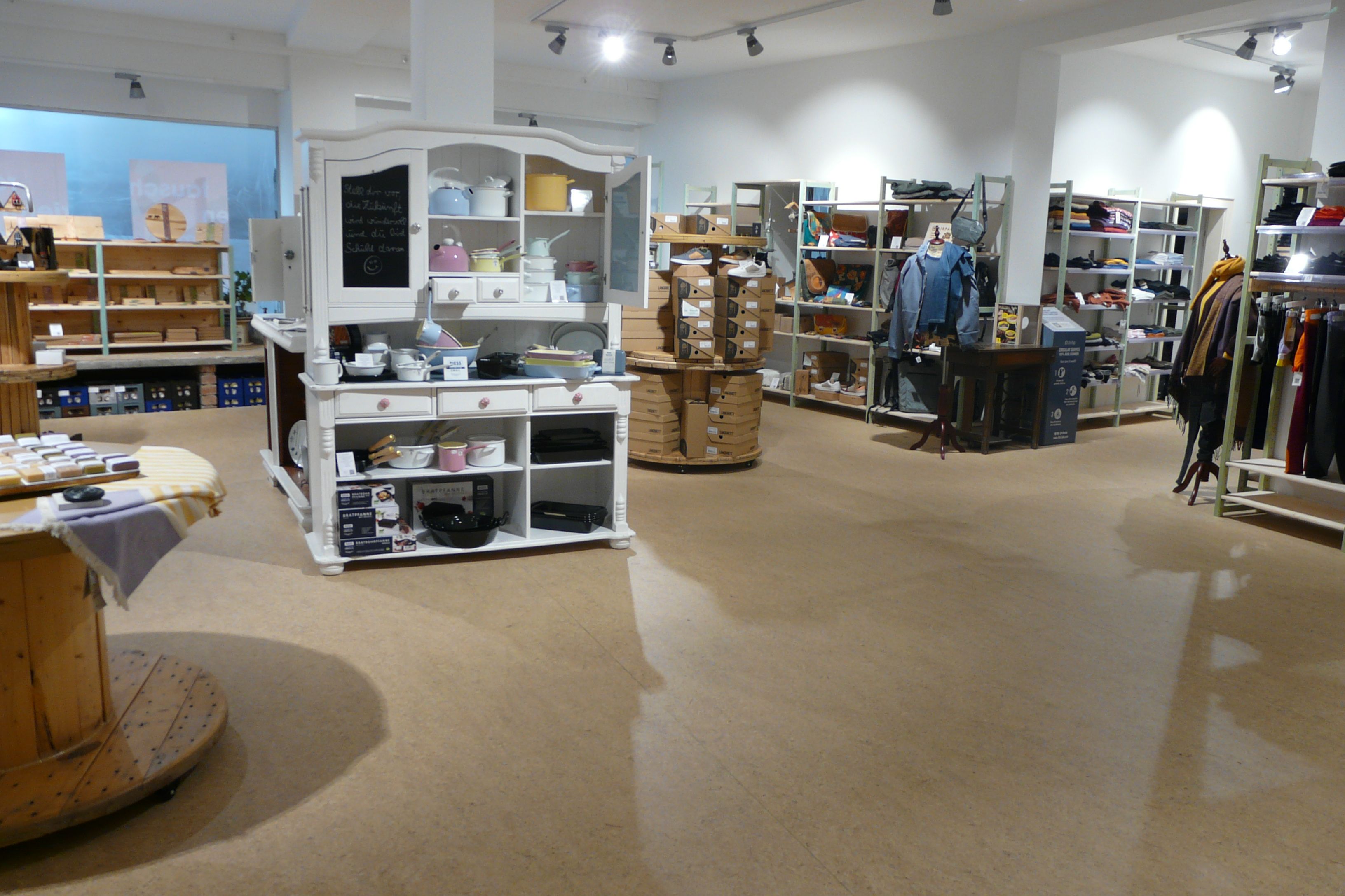 Der gemeinnütze Verein Zukunftswerk e.V. betreibt in zwei Räumen im Zukunftshaus einen dauerhaften Tauschmarkt, welcher eher ein „Kreislaufmarkt“ ist, wie Kaja Jurak erklärt, die Vorsitzende des Vereins: „Es ist kein eins-zu-eins Tausch, sondern Abgabe und Mitnahme der Gegenstände sind unabhängig voneinander, das heißt ich kann auch nur etwas bringen oder nur etwas mitnehmen“. In einem Raum kann immer guterhaltene Kleidung abgegeben werden (für Kinder und Erwachsene), im anderen Raum wechselt jeden Monat das Thema. Los geht es mit Haushalt, gefolgt von Herbstdeko und Skiausstattung. Die Abgabe ist auf fünf Teile pro Person und Thema begrenzt und die Dinge werden bei Abgabe angeschaut, damit nur guterhaltene Produkte in den „Kreislaufmarkt“ kommen. Denn nur so funktioniert die Idee und jede und jeder kann etwas Schönes für sich finden.